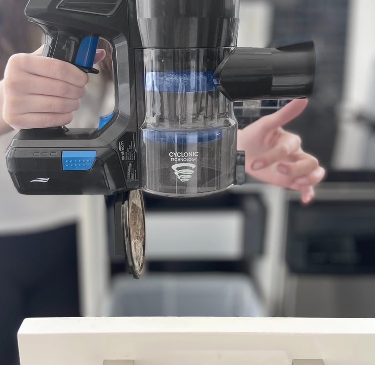 Facile à vider - Vidage des débris d’une simple pression sur le bouton. Aucun contact avec la saleté.